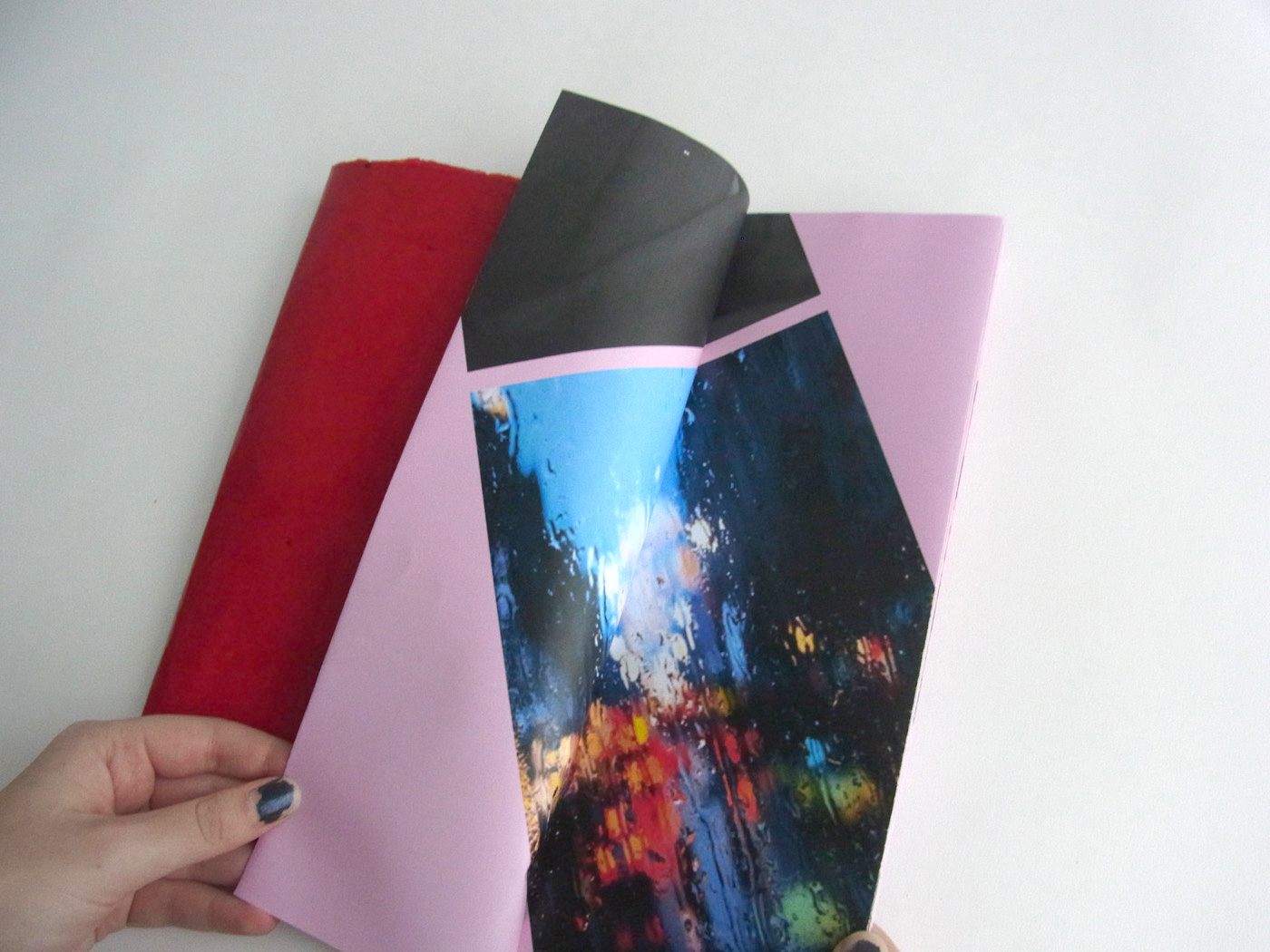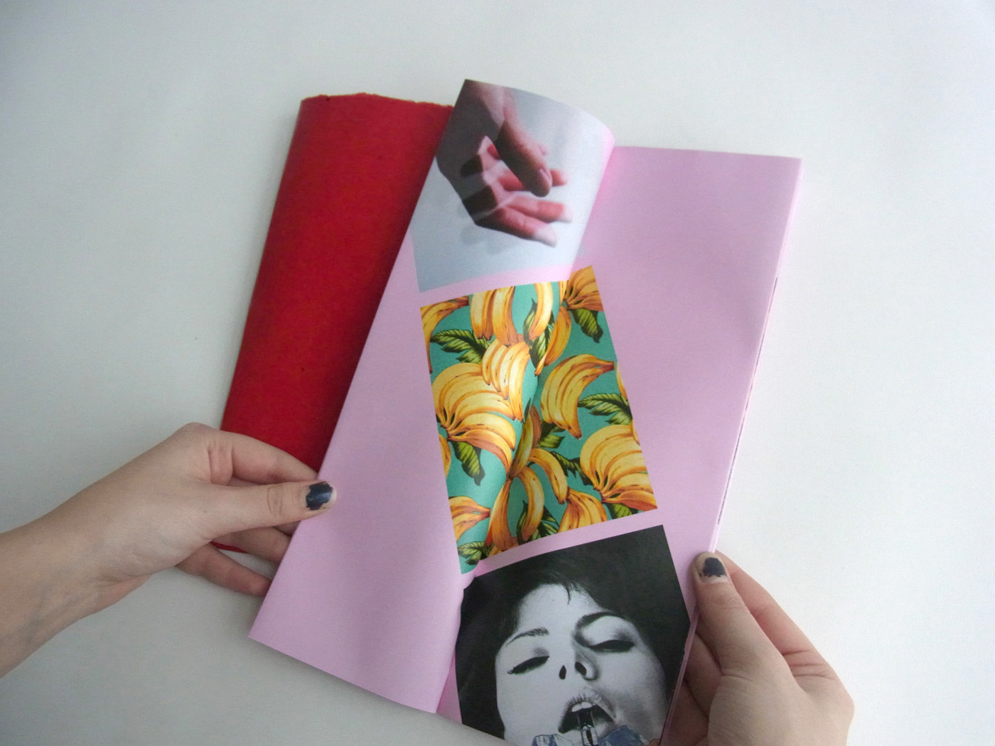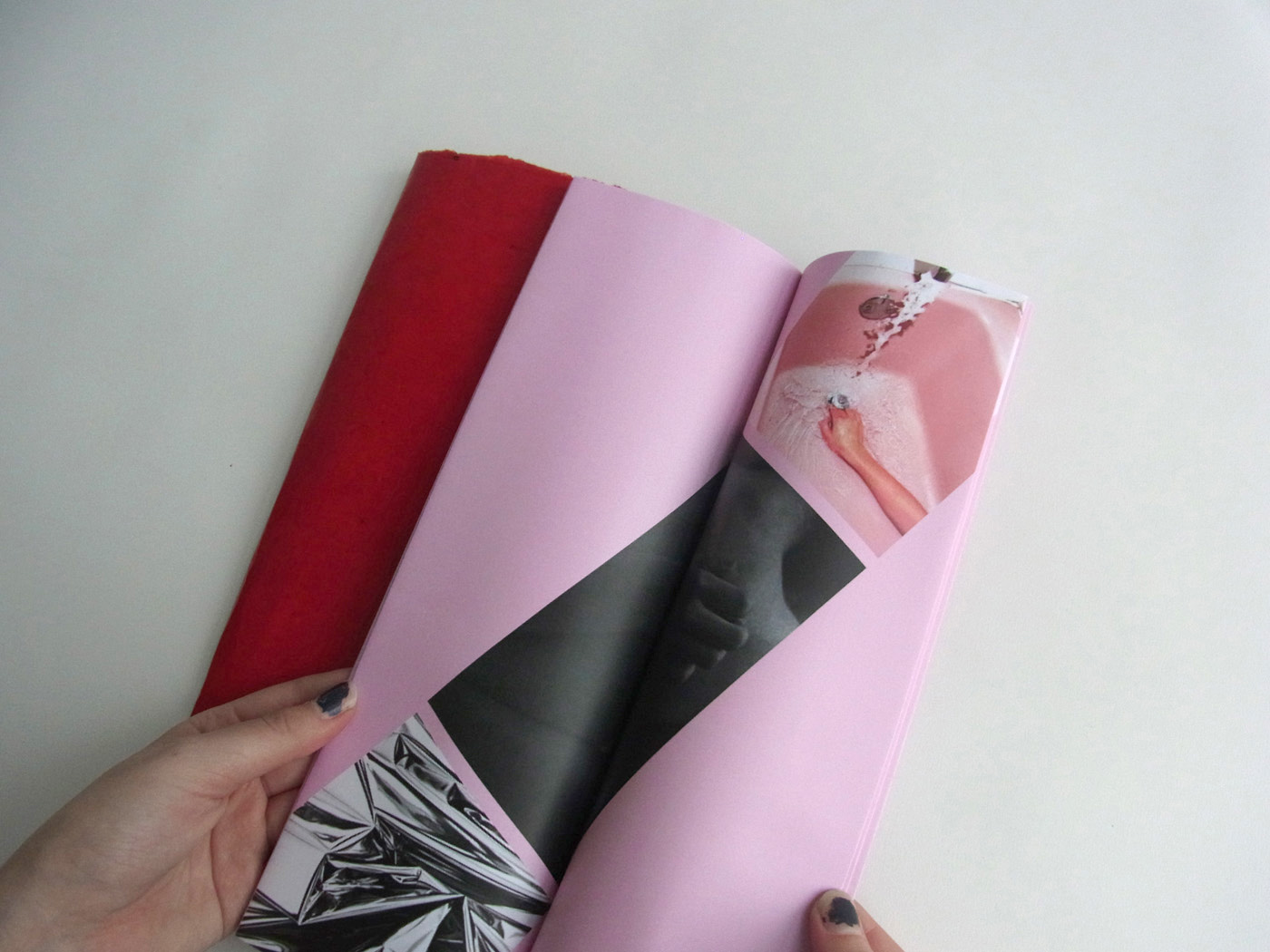 Sexuality is a core component of humanity. It is in our nature to infer sexual undertones even in non-sexual situations. “Sexual Content” experiments with the idea of human sexuality and how one’s experience can alter according to context. The title alone sets the mood and mindset of the viewer for the sexual experience within the book. The photographs are specifically grouped to produce an erotic storyline. The meaning of the images are thusly altered because of their placement within the booklet. The details from mood, typography, materials, placement, and french folds add to the sexual context and experience.