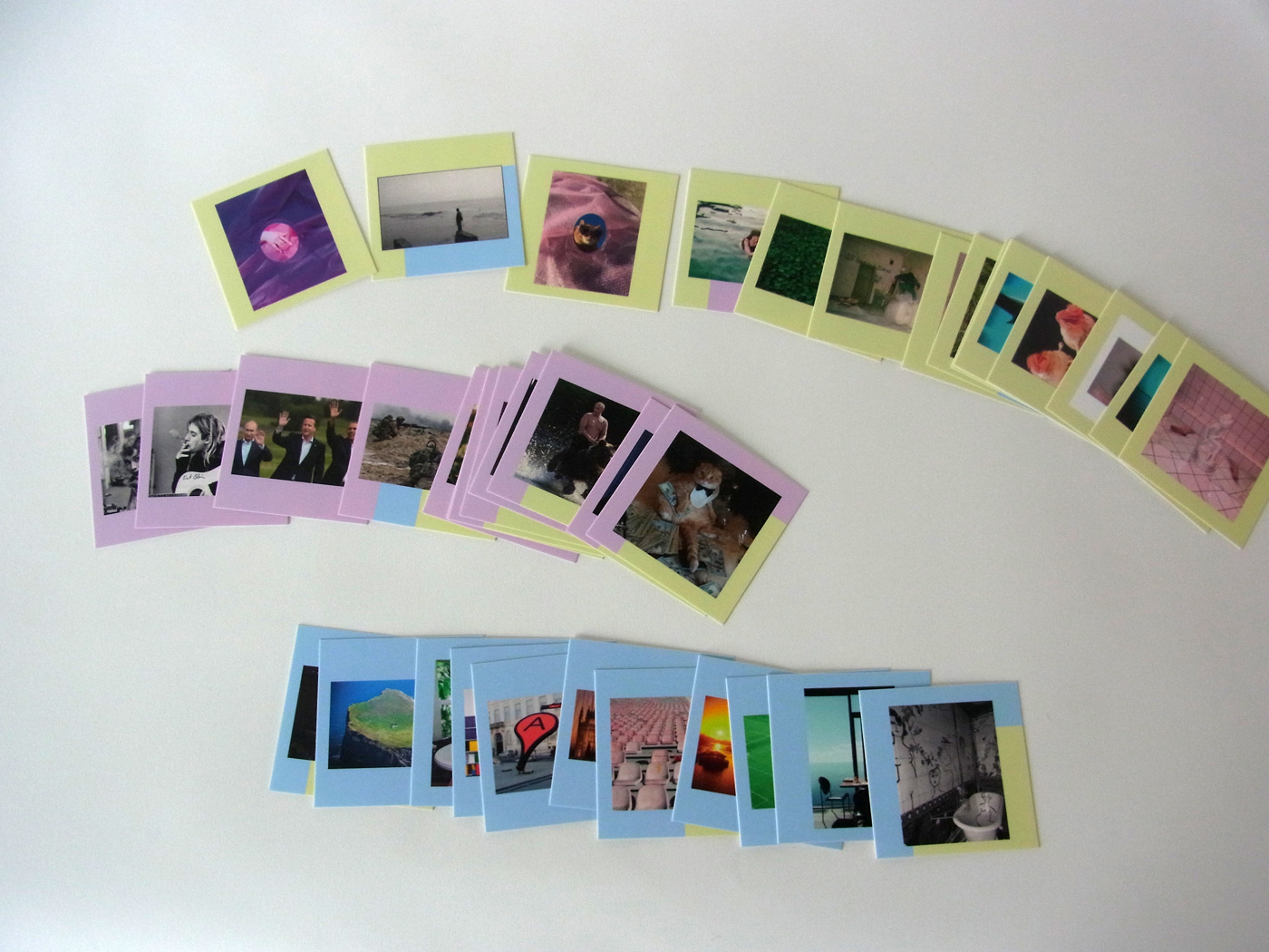You may find that there are more than one type of color on the card,that is because this image may contain more that one element. For example, you can see a man stand near by the sea in this picture, you can interpret it as a setting: a story happens near by the sea, or you can interpret it as a plot: someone stand nearby the sea. Each image have many means which depend on your own interpretation,by combining those interpretations with imagination, users are reality to create their stories.