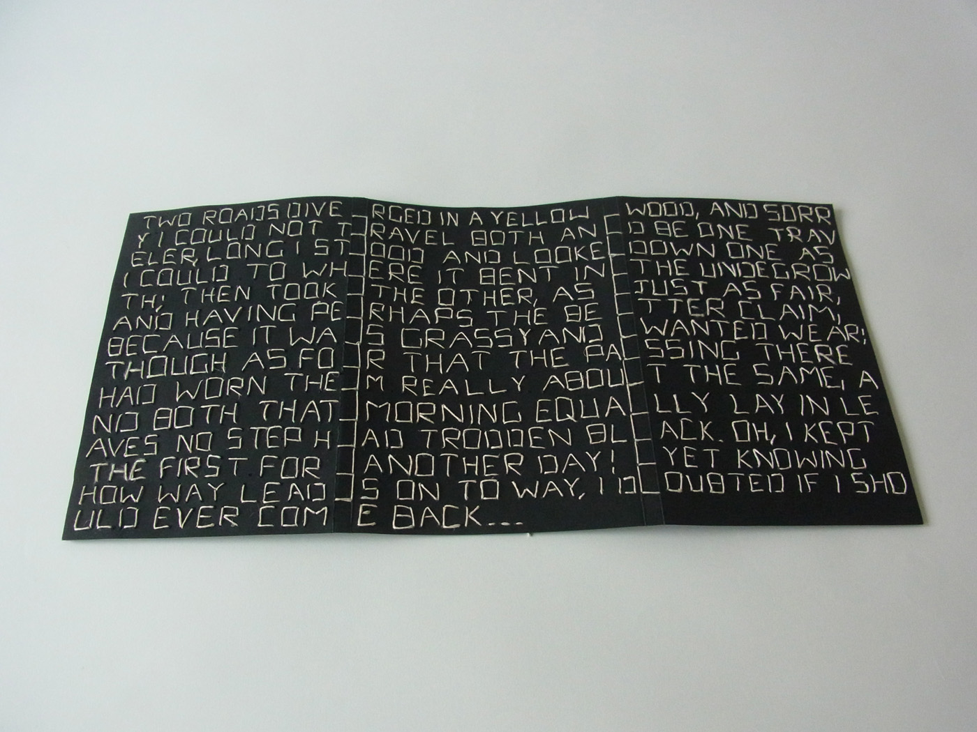 In "Two Roads" you can experience the constant battle of morality in the human race through images. In this small book, you can interchange the pages to create your own story and thus have a therapeutic experience as to what you believe is wrong and right. As humans we are constantly battling with ourselves to make the right decision and this book explores the construct behind our personal ethicality.